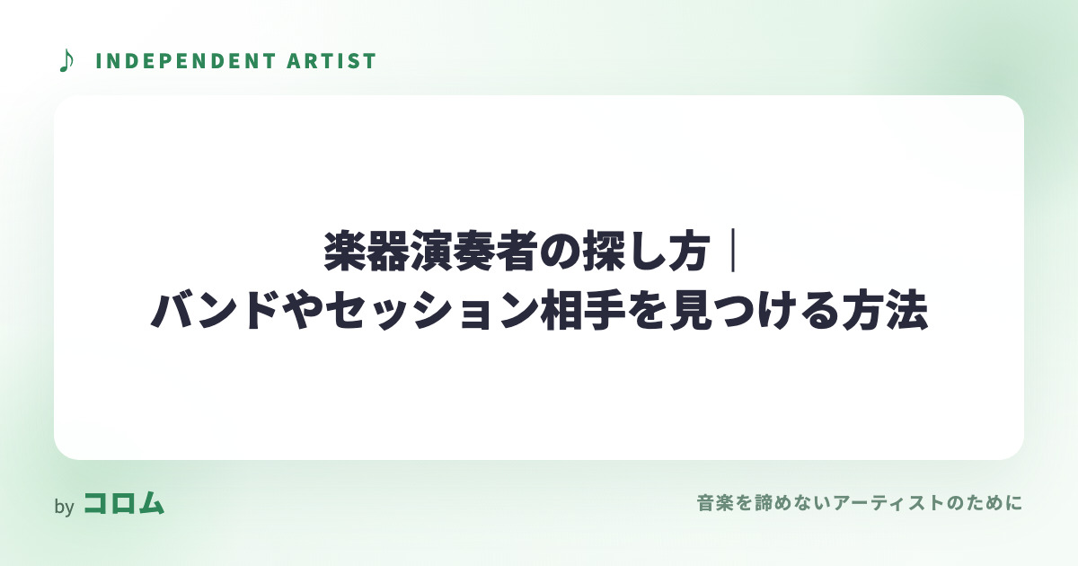 新着記事News 歌手活動を支えるおすすめツール10選|制作から発信まで 2026.04.26 音楽制作 作詞家におすすめのツール7選!創作をもっとスムーズに 2026.04.26 音楽制作 音楽制作の流れを徹底解説!初心者でも迷わない7つのステップ 2026.04.25 音楽制作 コラム スタジオ ライブ ライブハウス レコーディング 仕事 音楽制作 人気記事Popular Post ライブのダイブ・モッシュとは?種類や注意点、避ける方法を解説! 37055 views スタンディングライブのルールを解説!良い場所を取るポイントも紹介 32197 views 路上ライブ出身の有名人17選!意外なあの人気アーティストも 28121 views 路上ライブでのカバー演奏は著作権の侵害になる?クリアする方法は? 19901 views ライブに出演するにはどうしたらいい?出演の流れを初心者向けに解説! 18826 views ライブの一人参戦は珍しい?一人参戦のメリットや楽しみ方を解説! 16326 views 歌手必見、おすすめのど飴12選!のど飴の選び方や正しい舐め方も解説 16045 views 対バン・対バンライブとは?流れやメリット・デメリットを解説! 12387 views インディペンデントアーティスト編集部Profile「私たちは音楽を諦めない」というビジョンを掲げ、多様なジャンルのインディペンデントアーティストたちを紹介するオウンドメディアを運営しています。新たな才能を発掘し、アーティストの創造性を全面的に支援することで、音楽の新しい形を創り出しています。マイクロライブ空間アプリ「コロム」運営。TwitterInstagramContact