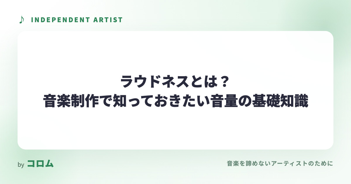 新着記事News ホームレコーディングとスタジオレコーディングの違いを徹底比較!どちらを選ぶべきか 2026.04.29 音楽制作 音源マスタリングとは?仕上げで音が変わる基礎知識と手順を解説 2026.04.29 音楽制作 アーティストのためのマイク選び方ガイド|用途別に徹底解説 2026.04.28 音楽制作 コラム スタジオ ライブ ライブハウス レコーディング 仕事 音楽制作 人気記事Popular Post ライブのダイブ・モッシュとは?種類や注意点、避ける方法を解説! 37146 views スタンディングライブのルールを解説!良い場所を取るポイントも紹介 32288 views 路上ライブ出身の有名人17選!意外なあの人気アーティストも 28157 views 路上ライブでのカバー演奏は著作権の侵害になる?クリアする方法は? 19919 views ライブに出演するにはどうしたらいい?出演の流れを初心者向けに解説! 18832 views ライブの一人参戦は珍しい?一人参戦のメリットや楽しみ方を解説! 16359 views 歌手必見、おすすめのど飴12選!のど飴の選び方や正しい舐め方も解説 16122 views 対バン・対バンライブとは?流れやメリット・デメリットを解説! 12404 views インディペンデントアーティスト編集部Profile「私たちは音楽を諦めない」というビジョンを掲げ、多様なジャンルのインディペンデントアーティストたちを紹介するオウンドメディアを運営しています。新たな才能を発掘し、アーティストの創造性を全面的に支援することで、音楽の新しい形を創り出しています。マイクロライブ空間アプリ「コロム」運営。TwitterInstagramContact