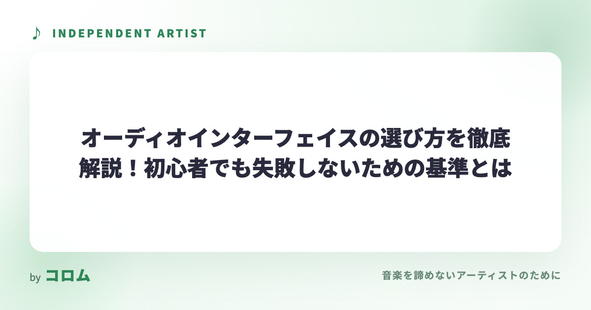 新着記事News アーティストのためのマイク選び方ガイド|用途別に徹底解説 2026.04.28 音楽制作 音楽制作で使うファイル形式の種類と使い分けを徹底解説 2026.04.28 音楽制作 オーディオインターフェイスの選び方を徹底解説!初心者でも失敗しないための基準とは 2026.04.27 音楽制作 コラム スタジオ ライブ ライブハウス レコーディング 仕事 音楽制作 人気記事Popular Post ライブのダイブ・モッシュとは?種類や注意点、避ける方法を解説! 37121 views スタンディングライブのルールを解説!良い場所を取るポイントも紹介 32256 views 路上ライブ出身の有名人17選!意外なあの人気アーティストも 28139 views 路上ライブでのカバー演奏は著作権の侵害になる?クリアする方法は? 19913 views ライブに出演するにはどうしたらいい?出演の流れを初心者向けに解説! 18831 views ライブの一人参戦は珍しい?一人参戦のメリットや楽しみ方を解説! 16349 views 歌手必見、おすすめのど飴12選!のど飴の選び方や正しい舐め方も解説 16100 views 対バン・対バンライブとは?流れやメリット・デメリットを解説! 12397 views インディペンデントアーティスト編集部Profile「私たちは音楽を諦めない」というビジョンを掲げ、多様なジャンルのインディペンデントアーティストたちを紹介するオウンドメディアを運営しています。新たな才能を発掘し、アーティストの創造性を全面的に支援することで、音楽の新しい形を創り出しています。マイクロライブ空間アプリ「コロム」運営。TwitterInstagramContact