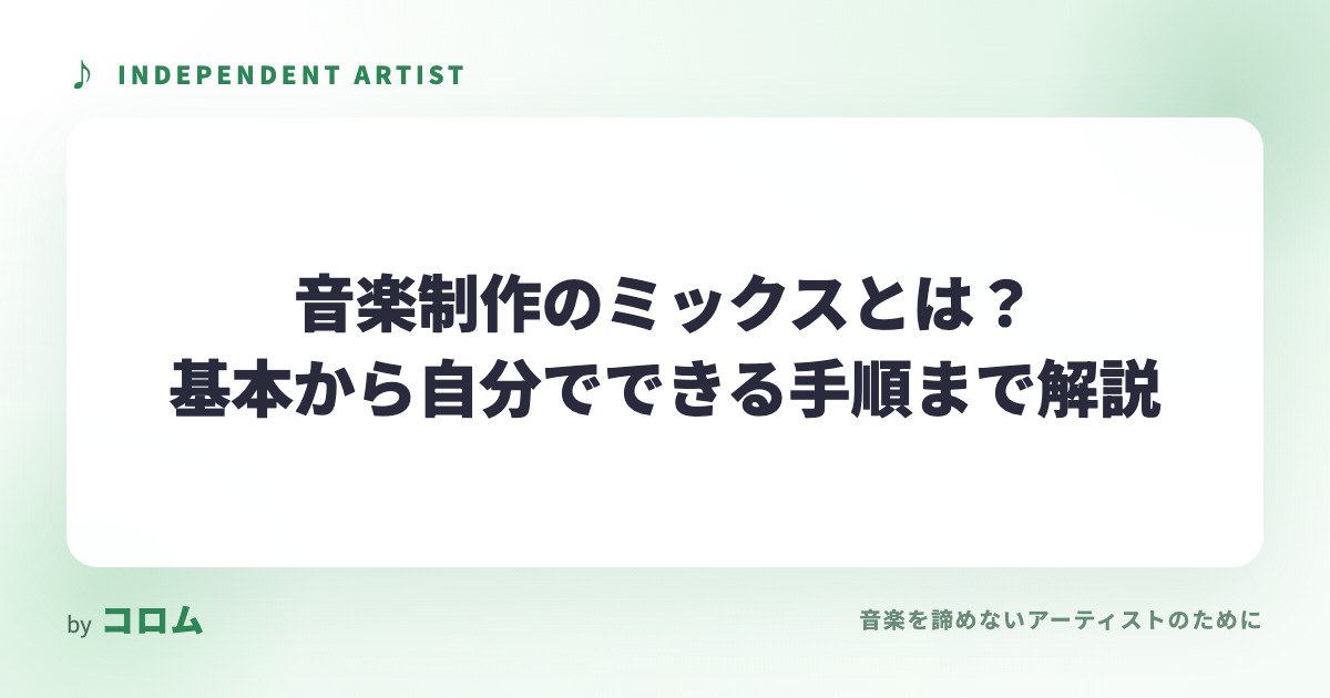 新着記事News 楽器演奏の依頼を受ける時に知っておきたいこと 2026.04.24 音楽制作 楽器演奏の依頼方法を徹底解説!依頼先の選び方から契約時の注意点まで 2026.04.24 音楽制作 仕事と両立しながら音楽活動はできる?地方×オンラインで人生が変わった選択 2026.04.17 コラム コラム スタジオ ライブ ライブハウス レコーディング 仕事 音楽制作 人気記事Popular Post ライブのダイブ・モッシュとは?種類や注意点、避ける方法を解説! 36956 views スタンディングライブのルールを解説!良い場所を取るポイントも紹介 32011 views 路上ライブ出身の有名人17選!意外なあの人気アーティストも 28093 views 路上ライブでのカバー演奏は著作権の侵害になる?クリアする方法は? 19886 views ライブに出演するにはどうしたらいい?出演の流れを初心者向けに解説! 18809 views ライブの一人参戦は珍しい?一人参戦のメリットや楽しみ方を解説! 16299 views 歌手必見、おすすめのど飴12選!のど飴の選び方や正しい舐め方も解説 15952 views 対バン・対バンライブとは?流れやメリット・デメリットを解説! 12366 views インディペンデントアーティスト編集部Profile「私たちは音楽を諦めない」というビジョンを掲げ、多様なジャンルのインディペンデントアーティストたちを紹介するオウンドメディアを運営しています。新たな才能を発掘し、アーティストの創造性を全面的に支援することで、音楽の新しい形を創り出しています。マイクロライブ空間アプリ「コロム」運営。TwitterInstagramContact