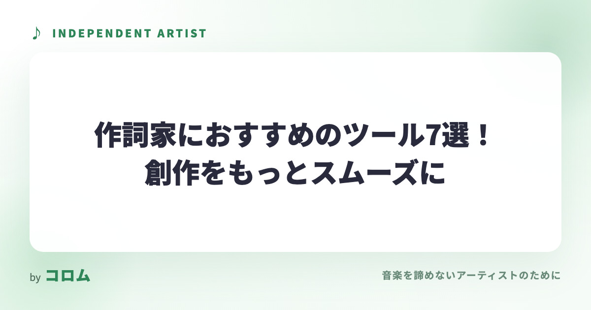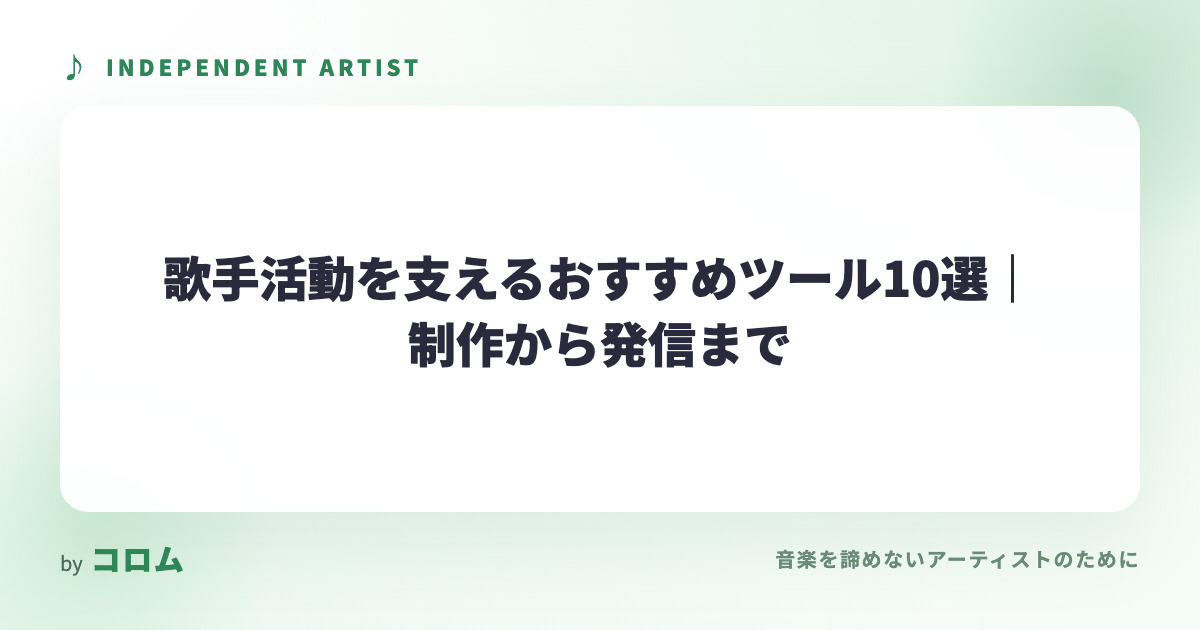 新着記事News オーディオインターフェイスの選び方を徹底解説!初心者でも失敗しないための基準とは 2026.04.27 音楽制作 楽器演奏者の探し方|バンドやセッション相手を見つける方法 2026.04.27 音楽制作 歌手活動を支えるおすすめツール10選|制作から発信まで 2026.04.26 音楽制作 コラム スタジオ ライブ ライブハウス レコーディング 仕事 音楽制作 人気記事Popular Post ライブのダイブ・モッシュとは?種類や注意点、避ける方法を解説! 37088 views スタンディングライブのルールを解説!良い場所を取るポイントも紹介 32225 views 路上ライブ出身の有名人17選!意外なあの人気アーティストも 28125 views 路上ライブでのカバー演奏は著作権の侵害になる?クリアする方法は? 19906 views ライブに出演するにはどうしたらいい?出演の流れを初心者向けに解説! 18828 views ライブの一人参戦は珍しい?一人参戦のメリットや楽しみ方を解説! 16338 views 歌手必見、おすすめのど飴12選!のど飴の選び方や正しい舐め方も解説 16072 views 対バン・対バンライブとは?流れやメリット・デメリットを解説! 12392 views インディペンデントアーティスト編集部Profile「私たちは音楽を諦めない」というビジョンを掲げ、多様なジャンルのインディペンデントアーティストたちを紹介するオウンドメディアを運営しています。新たな才能を発掘し、アーティストの創造性を全面的に支援することで、音楽の新しい形を創り出しています。マイクロライブ空間アプリ「コロム」運営。TwitterInstagramContact